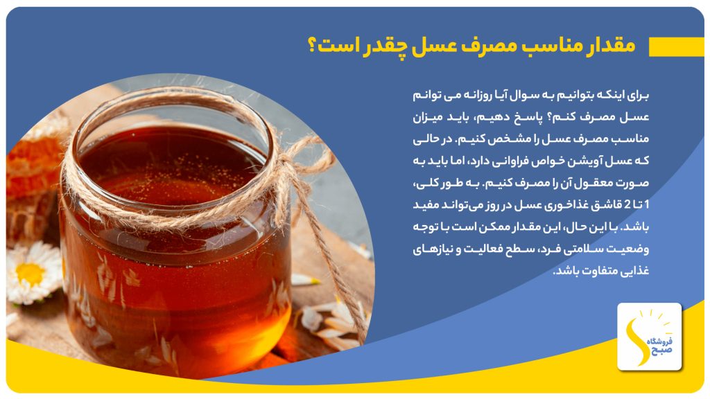 برای اینکه بتوانیم به سوال آیا روزانه می توانم عسل مصرف کنم؟ پاسخ دهیم، باید میزان مناسب مصرف عسل را مشخص کنیم. در حالی که عسل چهل گیاه خواص فراوانی دارد، اما باید به صورت معقول آن را مصرف کنیم. به طور کلی، 1 تا 2 قاشق غذاخوری عسل در روز میتواند مفید باشد. با این حال، این مقدار ممکن است با توجه وضعیت سلامتی فرد، سطح فعالیت و نیازهای غذایی متفاوت باشد. مجله mease honey در مورد سوال آیا روزانه می توانم عسل مصرف کنم؟ می گوید:
