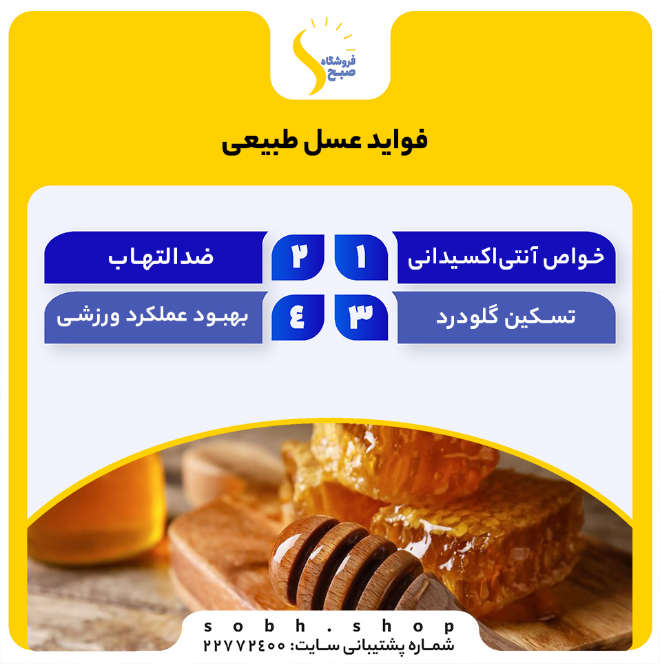 • ضدالتهاب: عسل می‌تواند به کاهش التهاب در بدن کمک کند و در درمان برخی بیماری‌ها موثر باشد.