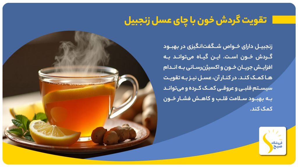 زنجبیل دارای خواص شگفتانگیزی در بهبود گردش خون است. این گیاه میتواند به افزایش جریان خون و اکسیژنرسانی به اندامها کمک کند. در کنار آن، عسل نیز به تقویت سیستم قلبی و عروقی کمک کرده و میتواند به بهبود سلامت قلب و کاهش فشار خون کمک کند.