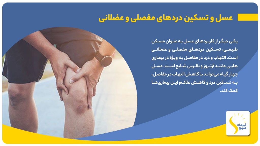 یکی دیگر از کاربردهای عسل به عنوان مسکن طبیعی، تسکین دردهای مفصلی و عضلانی است. التهاب و درد در مفاصل به ویژه در بیماریهایی مانند آرتروز و نقرس شایع است. عسل چهار گیاه میتواند با کاهش التهاب در مفاصل، به تسکین درد و کاهش علائم این بیماریها کمک کند.