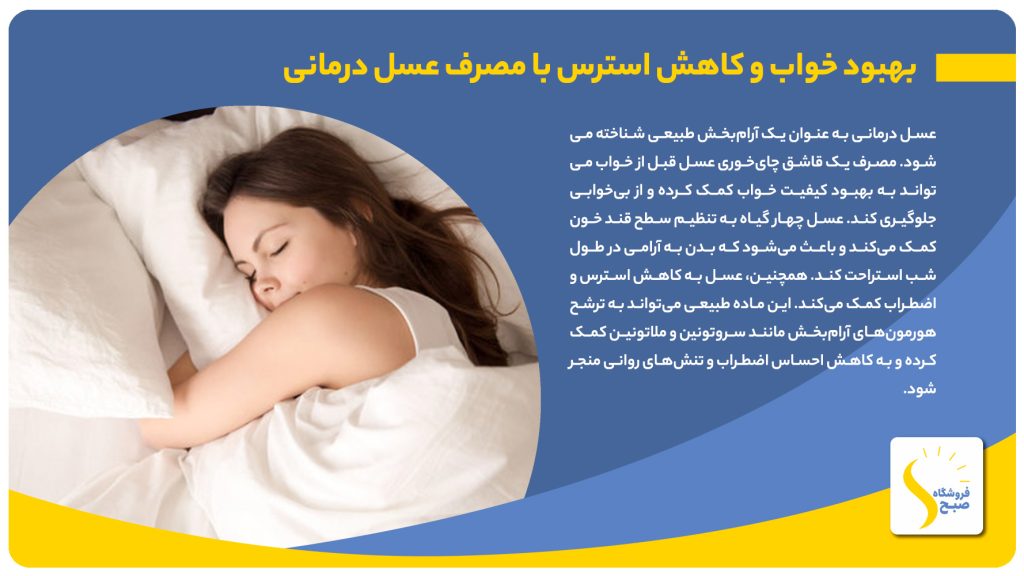 عسل درمانی به عنوان یک آرام‌بخش طبیعی شناخته می‌شود. مصرف یک قاشق چای‌خوری عسل قبل از خواب می‌تواند به بهبود کیفیت خواب کمک کرده و از بی‌خوابی جلوگیری کند. عسل چهار گیاه به تنظیم سطح قند خون کمک می‌کند و باعث می‌شود که بدن به آرامی در طول شب استراحت کند. همچنین، عسل به کاهش استرس و اضطراب کمک می‌کند. این ماده طبیعی می‌تواند به ترشح هورمون‌های آرام‌بخش مانند سروتونین و ملاتونین کمک کرده و به کاهش احساس اضطراب و تنش‌های روانی منجر شود.