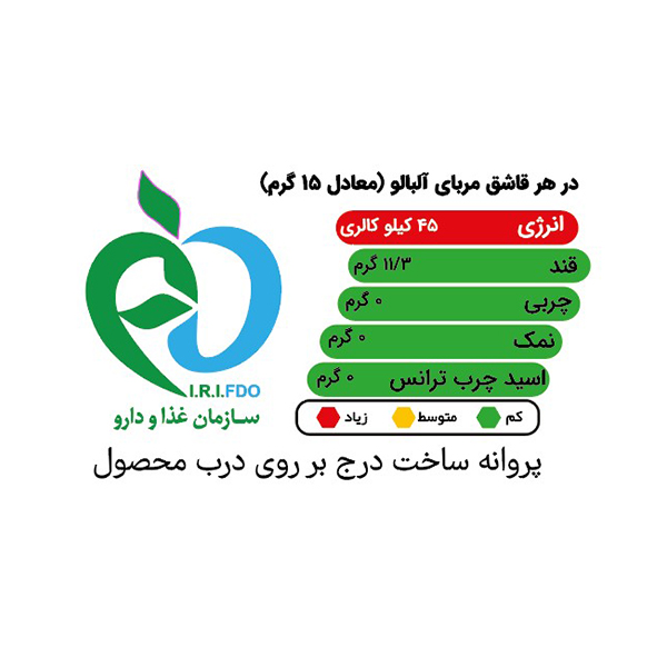 ترکیبات : آلبالو , شکر , شربت گلوکوز , پکتین , اسید سیتریک , پودر وانیل , آب.