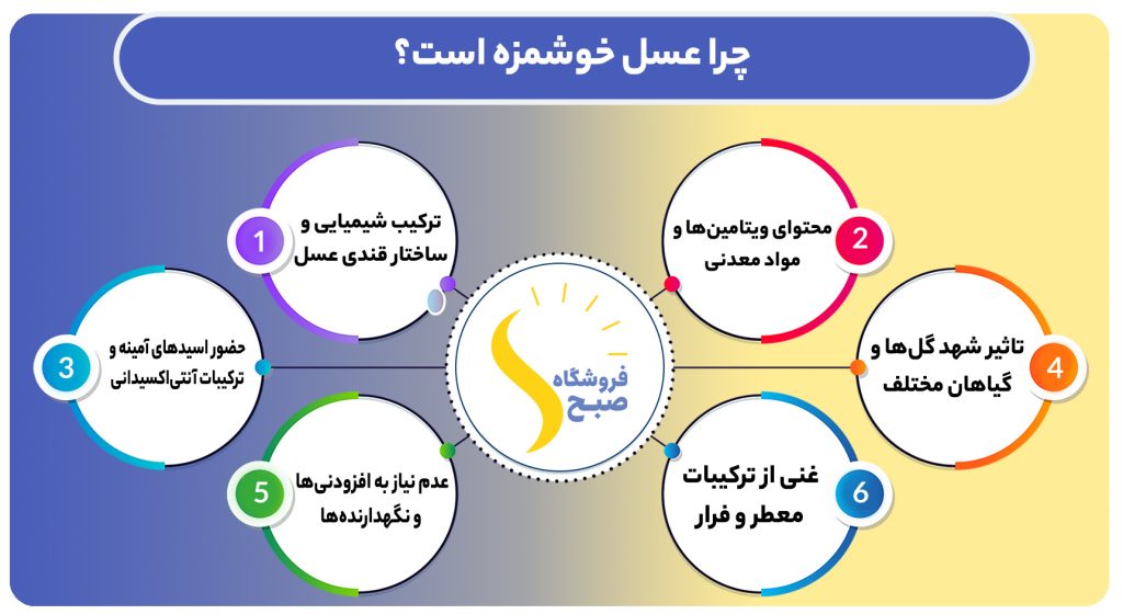 عسل، یکی از قدیمی‌ترین و طبیعی‌ترین شیرین‌کننده‌هایی است که انسان‌ها از آن استفاده کرده‌اند. این مایع طلایی رنگ نه تنها طعمی دلپذیر و شیرین دارد بلکه به دلیل ترکیبات خاصش، ویژگی‌های طعمی منحصر به فردی را ارائه می‌دهد که آن را از دیگر شیرین‌کننده‌ها متمایز می‌کند. در این مقاله، به بررسی سوال چرا عسل خوشمزه است؟ خواهیم پرداخت (اگر به این موارد علاقه دارید، می توانید مقاله آیا می توانم عسل را روزانه مصرف کنم؟ را مطالعه کنید).